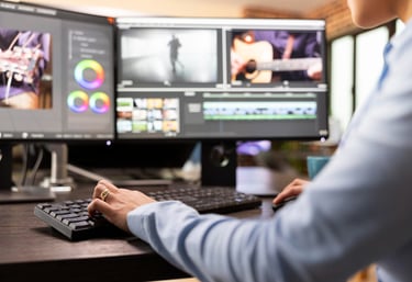 كما نقدم خدمات الإنتاج المرئي وصناعة الفيديو والموشن جرافيك، وهي أدوات أصبحت من أقوى عناصر التسويق الحديث. لذلك نصمم فيديوهات دعائية قصيرة، فيديوهات تعريفية متحركة، مقدمات للسوشيال ميديا، إعلانات احترافية، ومونتاج سينمائي يقدّم أفكارك بأسلوب جذاب ومبتكر.
